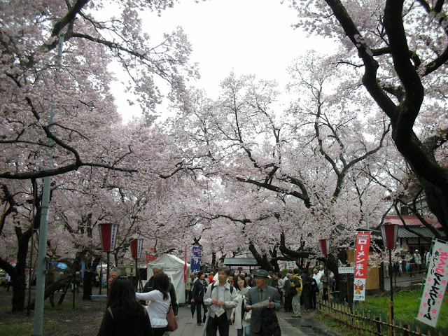 逛呀逛的,居然逛出了南口,原來這兒也有一列櫻花樹,而且不似園內的那麼高,遊人可以穿插其中拍照。我和朋友也逗留了好久,差點樂不思蜀了。