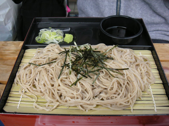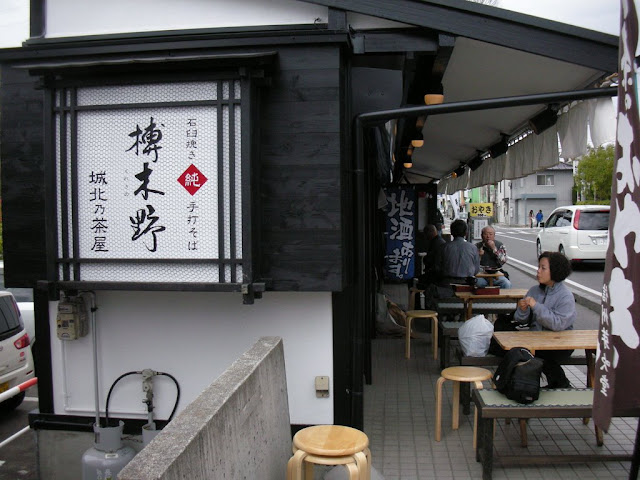 參觀完畢,在前往松本城途中,經過一小店,有手打soba,決定就在這兒午餐。見鄰桌大叔們說牛肉串燒oishi,我們每人也要了一串(@ 500yen),另外朋友要了冷麵,@ 650yen;我則點了山菜soba,@ 550yen。怎知店員誤會了朋友的意思,來了串不知甚麼糰子,只好再order了一個冷麵。這串糰子,完全不是我們那一杯茶,只是勉強吞下。期待甚欣的牛肉串燒,竟然只是略為燒了燒表面,內裏還是凍的,比高山朝市那一串還貴,但食味就相差丈遠。